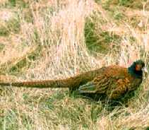 The best-known species is the common pheasant, often called the ring-necked pheasant because of the white ring on the neck of males of several of the 34 subspecies. The female is much less conspicuous, with mottled brown plumage and a shorter tail. The pheasant, originally introduced into Europe from Asia in about AD 500, was a ringless subspecies from the eastern side of the Black Sea.