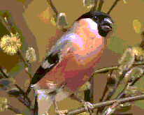 Bullfinch, common name for birds of a genus of the finch family, particularly the common European, or northern, bullfinch. The origin of the name is uncertain, but probably refers to the short, thick body and head of the species as compared with other finches. The birds grow to 14.5 cm (6 in) long, and the plumage of the male is grey above and bright pink below. The head, bill, and most of the wings and tail are black; the wings are crossed with a conspicuous white bar. The female is greyish-brown above and pinkish-brown below. The birds are good mimics, and individuals have been caged, and taught to whistle tunes, although the practice of caging is illegal in most countries. The birds are regarded as a pest in fruit-growing areas because of their habit of eating the buds of apple and pear trees.