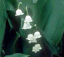 Lily of the Valley, common name for a genus of three species of perennial herbs. The commonly cultivated species is native to Europe. Lily of the valley has long been a favourite for shady gardens, where its rhizomes (underground stems) form dense patches to the exclusion of all other vegetation. The leaves are tongue-shaped, parallel-veined, and rise from ground level. The fruit is a red berry. The flowers are tiny white bells (occasionally other colours in cultivars) hanging on one side of a single erect stem up to 30 cm (12 in) tall. Because of their fragrance, the flowers are used in the manufacture of perfume. In cultivation, lily of the valley is usually propagated from the terminal buds, called pips, of the underground rootstock. Once established, populations tend to persist with great tenacity.