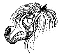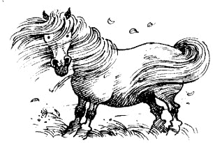 How long this will take depends on the temperament of pony and his past experiences and the frequency of the 'lessons'. The most important token of friendship at this stage is when the pony gingerly decides to smell or touch your hand with his lips. They learn a great deal about you from this hand/mouth contact and it can be the first point of touch. From here the pony can gradually be scratched under his chin, neck etc.. and then all over the body, with legs last. Keep repeating the process until the pony is calm being touched everywhere, including his head. The pony may follow you now, if so, tell him to 'walk on', if he stops when you do, tell him to 'stand'. This is good practice for leading, and will get the pony used to the idea of walking with you. Reward him with a scratch or titbit. If he is happy with this get him used to the idea of moving away from hand pressure, i.e. apply hand pressure intermittently on his chest and say 'back' firmly. Stop as soon as he responds with just one step and reward him , then encourage him to step forward again. He will soon get the idea and now realises that you are controlling and manoeuvring him. These exercises are usually enjoyable for the pony and can be done without headcollar or leadrope. They can be practiced for however long you have the pony's attention. All this can be done on site, the more frequent the 'doses' of contact, the more quickly the pony will come to hand. The presence of other handled ponies will also make the process easier, as ponies also gain confidence from their peers and learn to some extent by watching. During foot trimming sessions here, for example, the other ponies are very nosey and carefully watch the pony whose turn it is, smell the farrier, tools, the van, and will get as close as possible to see what is going on!
