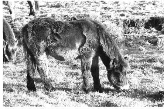 One of the first noticed drawbacks to the pony as an easy lawn-mower is that it does not eat evenly over any area. Part of the grazing will be chosen as a latrine area and will not be grazed close. This occurs whether a single pony or a group are grazing. It may be seen on extensive pasture as well as in single fields. It is possible to force grazing over this area. This is less than considerate to mid and long term welfare of the pony as within the latrine area fall most of the worm eggs. If the pony is forced to eat the worm eggs it is more than likely to be permanently damaged by the resulting worm burden. In small areas of grazing, droppings should be collected from the pastures, not only for the benefit of the pony, but to protect any interesting plant species from being suddenly covered by a pile of droppings.