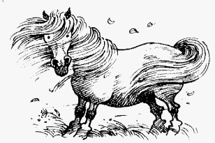 How long this will take depends on the temperament of pony and his past experiences and the frequency of the 'lessons'. The most important token of friendship at this stage is when the pony gingerly decides to smell or touch your hand with his lips. They learn a great deal about you from this hand/mouth contact and it can be the first point of touch. From here the pony can gradually be scratched under his chin, neck etc.. and then all over the body, with legs last. Keep repeating the process until the pony is calm being touched everywhere, including his head. The pony may follow you now, if so, tell him to 'walk on', if he stops when you do, tell him to 'stand'. This is good practice for leading, and will get the pony used to the idea of walking with you. Reward him with a scratch or titbit. If he is happy with this get him used to the idea of moving away from hand pressure, i.e. apply hand pressure intermittently on his chest and say 'back' firmly. Stop as soon as he responds with just one step and reward him , then encourage him to step forward again. He will soon get the idea and now realises that you are controlling and manoeuvring him. These exercises are usually enjoyable for the pony and can be done without headcollar or leadrope. They can be practiced for however long you have the pony's attention. All this can be done on site, the more frequent the 'doses' of contact, the more quickly the pony will come to hand. The presence of other handled ponies will also make the process easier, as ponies also gain confidence from their peers and learn to some extent by watching. During foot trimming sessions here, for example, the other ponies are very nosey and carefully watch the pony whose turn it is, smell the farrier, tools, the van, and will get as close as possible to see what is going on!